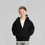 Zip hood, drop shoulder, kangaroo pocket, self-fabric lined hood, no drawcord, YKK zip, sleeve cuff ribbing